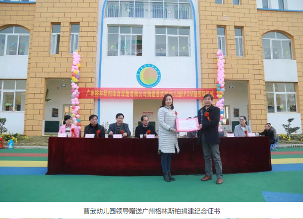 進(jìn)入社會福利院、各類教育學(xué)院,為孩子們的健康成長帶來保障。格林斯柏用自己的實際行動:捐建曹武鎮(zhèn)幼兒園EPDM塑膠廣場向社會交出了自己的答卷。